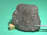 Description: Physical: A single 559g crusted specimen. Petrography: (A. Irving and S. Kuehner, UWS) Well-formed, fairly closely-packed chondrules (2.1 ± 1.1 mm) occur in a finer grained, metal-bearing matrix. Geochemistry: Olivine (Fa0.4-92.1; Cr2O3 in ferroan olivine 0.11-0.61 wt.%, mean 0.23 wt.%, sd 0.12 wt.%, N = 16), orthopyroxene (Fs0.5-19.1Wo4.3-5.5, N = 3), subcalcic augite (Fs19.3Wo25.1), augite (Fs7.4Wo38.7). Classification: Ordinary chondrite (LL3). The large mean chondrule size is typical of LL chondrites. The very wide range in Fa content of olivine, along with the mean value and standard deviation for Cr2O3 content of ferroan olivines, indicate that this unequilibrated specimen is of a subtype <3.2. (according to the criteria of Grossman and Brearley, 2005).
