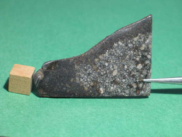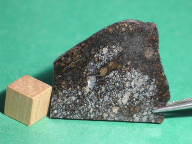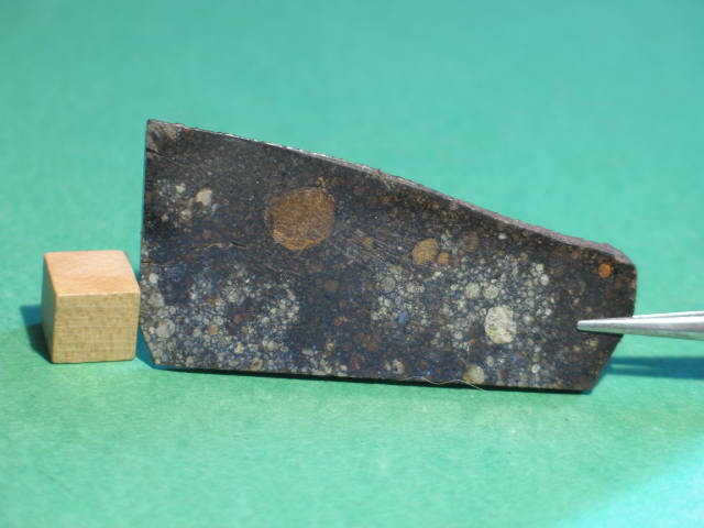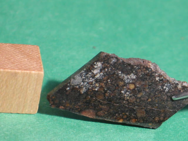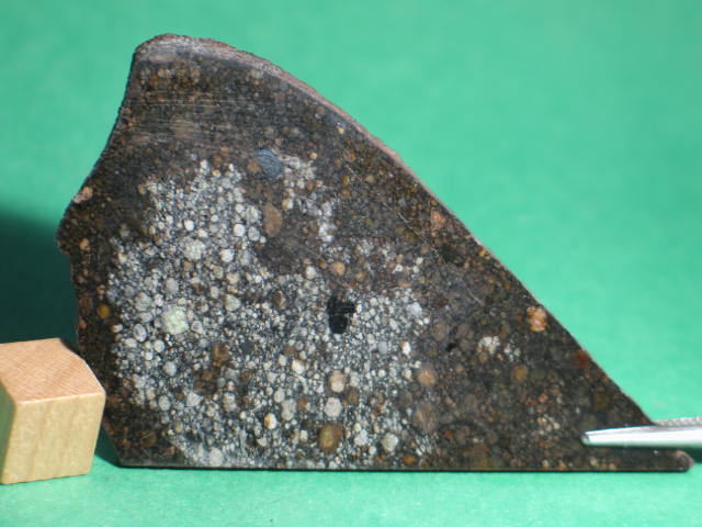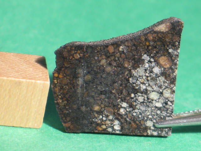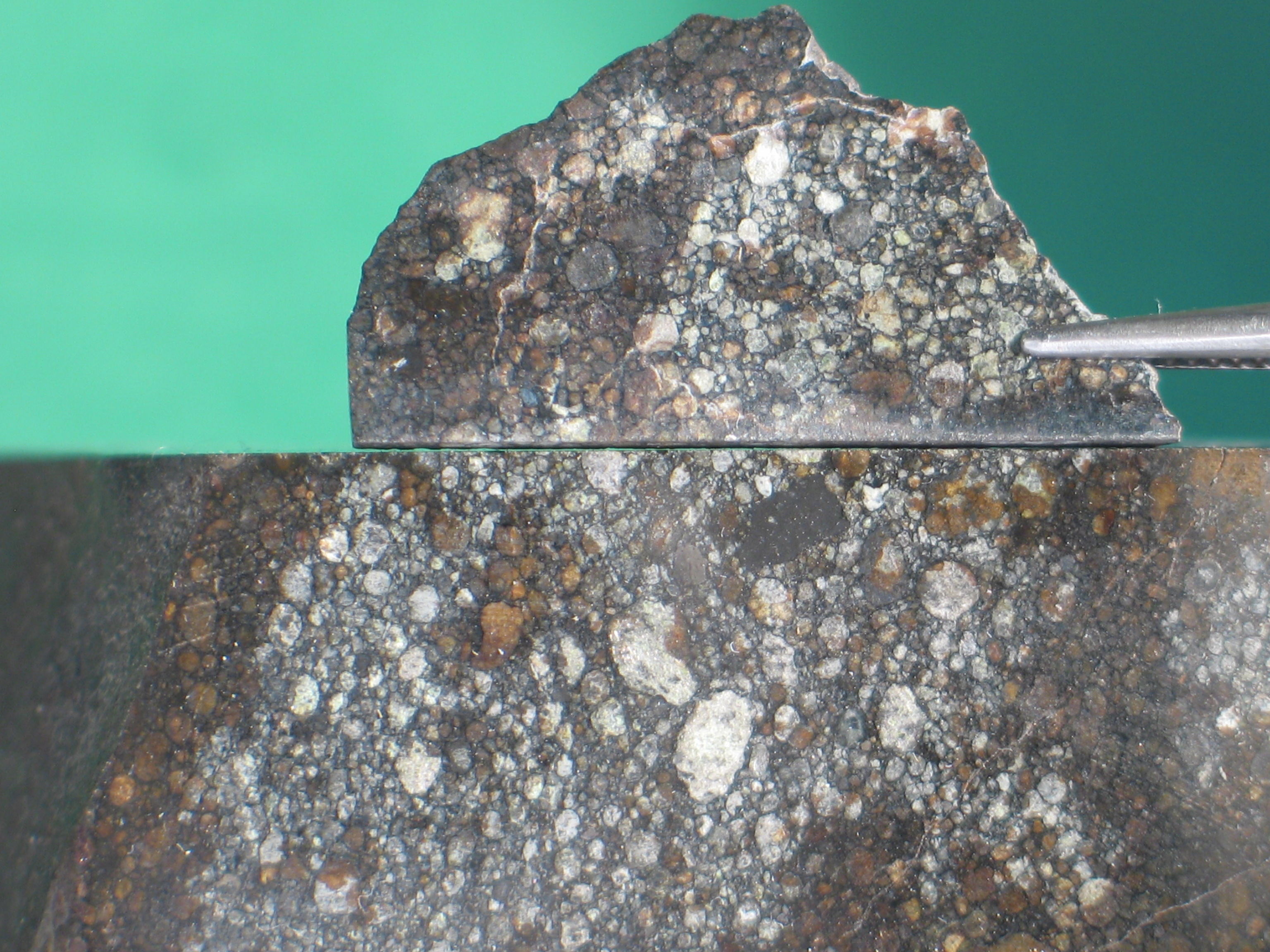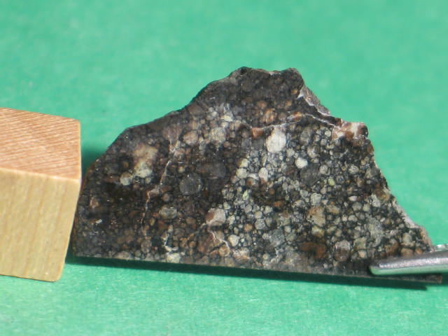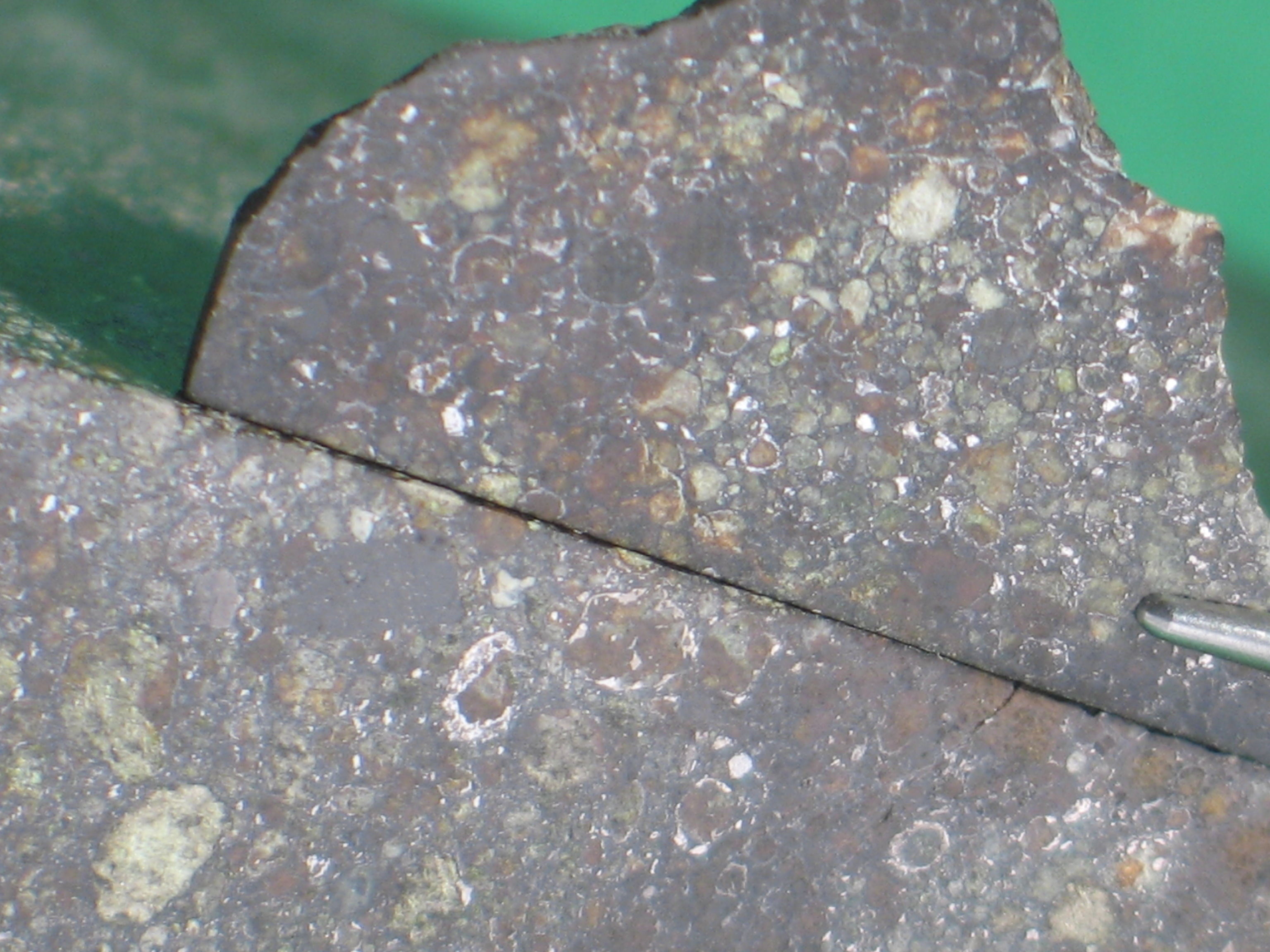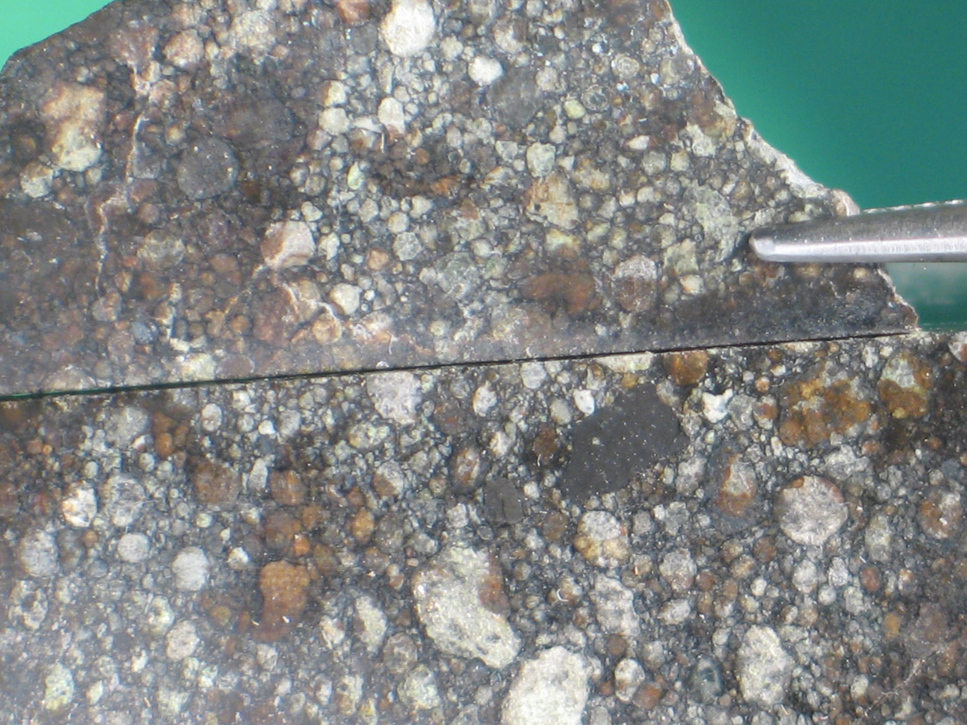 | Here is a preliminary assessment: “From these analyses, it is evident that the meteorite is an unequilibrated chondrite of petrologic type 3. It most closely resembles an ordinary chondrite, and based upon metal abundance would be classified as an L-type. However, fayalite content of olivine and large sulfide abundance is not consistent with an L classification, and I therefore would suggest that the meteorite is categorized as an ungrouped or anomalous UOC 3.0, S2, W1-W2.” More to come. |