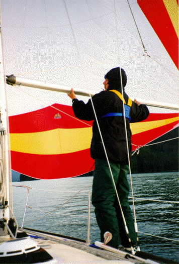 | Karl completes a high-stress jibe. |