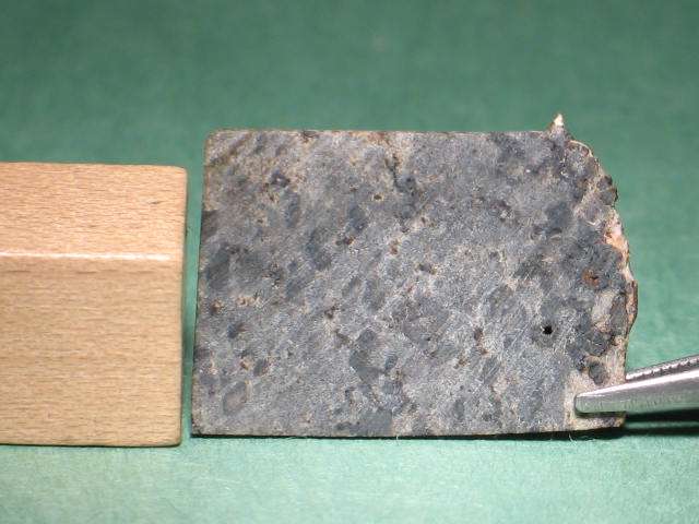 Description: A brownish stone weighing 2015 g was found in Dar al Gani, Sahara. Mineralogy and classification (J. Zipfel and P. Scherer, MPI): fusion crust absent; meteorite has a porphyritic texture, consisting of olivine embedded in a fine-grained matrix of clinopyroxene laths (pigeonite and minor augite) and interstitial feldspathic glass; mineral abundances similar to EET 79001 lithology A; Fe-sulfide, Ti-rich chromites, ilmenite and chromite present; shock features include twinning and fracturing of clinopyroxene, mosaicism of some olivine, and plagioclase converted to feldspathic glass; impact-melt pockets abundant; extensive terrestrial weathering resulted in carbonate veins crosscutting the meteorite along grain boundaries and cracks; bulk chemistry intermediate between basaltic and lherzolitic shergottites, with a high bulk Mg/(Mg + Fe), high concentrations of siderophile elements, relatively low abundances of heavy rare earth elements (HREE), and a strong light rare earth element (LREE) depletion; exposure age 1.1 ± 0.2 Ma; 36Ar/132Xe and 84Kr/132Xe typical of Martian meteorites, and 129Xe/132Xe similar to Chassigny. Oxygen isotopes (I. Franchi, OU): d18O = 4.57, d17O = 2.69‰ rel. SMOW (D17O = 0.317). The petrography, mineralogy, and noble gas chemistry of DaG 476 and DaG 489 are very similar, and the two are likely paired (L. Folco, MNA-SI, and J. Zipfel and L. Schultz, MPI). Specimens: type specimen, several grams, and one polished section, MPI; main mass with anonymous finder. From Meteoritical Bulletin 83.