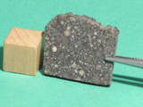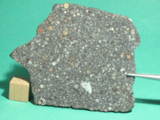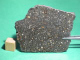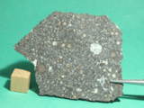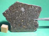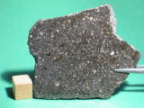 Description: Petrography: Chondrules and small CAIs set in a dark gray matrix. Opaques mostly magnetite; oxidized subgroup.