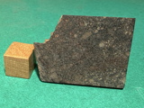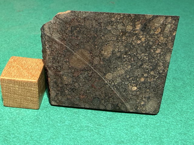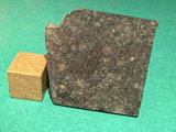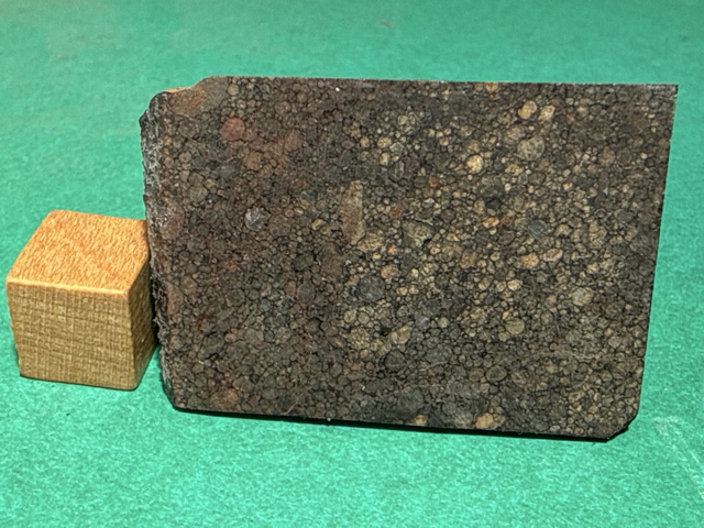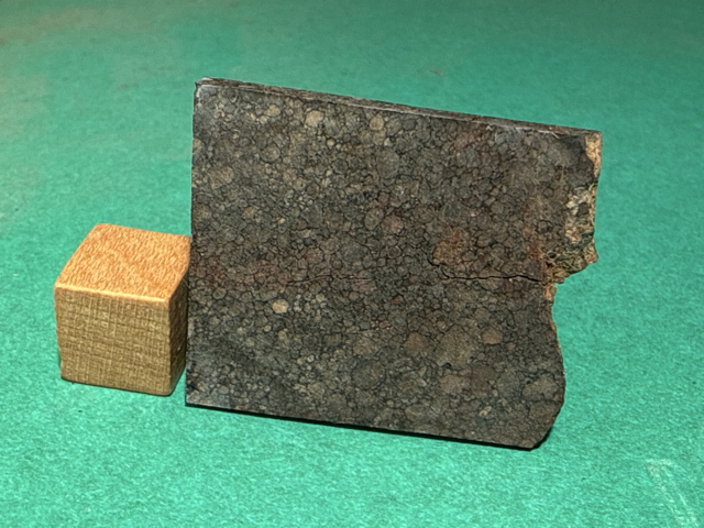 Petrography: (A. Irving and S. Kuehner, UWS) Relatively fresh specimen composed of very closely-packed, well-formed, medium-sized (0.4-2.1 mm) chondrules in a sparse black matrix with very low metal content. Olivine, orthopyroxene, pigeonite, diopside, sodic plagioclase, altered kamacite, taenite, troilite and rare chromite.