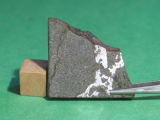 Description: After detonations were heard and smoky trails seen in the sky, a shower of meteorites landed near Portales, New Mexico. [More than] 53 objects have been recovered, with a total mass of [more than] 71.4 kg. The largest pieces weighed 16.5 kg, 17.0 kg , and at least nine others over 1 kg. A 530 g fragment went through the roof of Gayle Newberry's barn and embedded itself in a wall, indicating a trajectory west to east. The elliptical strewn field is approximately 7.7 ´ 2 km, trending N6065ºE, although recent reports may extend this somewhat. Mineralogy (D. A. Kring, J. D. Gleason, and D. H. Hill, UAz): olivine, Fa19.3±0.4; pyroxene, Fs17.2±0.3 Wo1.36±0.27; kamacite contains 0.55 ± 0.03 wt% Co; compositions indicate H-chondrite affinity; olivine indicates shock stage S1, plagioclase indicates S2S3, and abundant opaque shock veins suggest S3 or higher (discrepancies may be due to annealing). Macroscopic description (D. A. Kring, UAz): Some individuals are crosscut by an unusually high number of metal-rich shock veins, and some specimens are composed dominantly of metal. These metal-rich samples appear to be large single veins, or pockets of metal produced by intersecting veins. Angular chondritic clasts may have moved a few millimeters along metal-rich veins. Etching of centimeter-sized metal areas reveals a fine Widmanstätten pattern, bandwidth = 0.02 to 0.81 mm (average 0.32 mm). The composition of kamacite in metal-rich regions is the same as metal in chondritic areas (0.56 ± 0.05 wt% Co). The source of the metal in the shock veins appears to be the H-chondrite host, which is depleted in its normal complement of metal (4.4% rather than 1519%). (From the Meteoritical Bulletin No. 83, 1999)