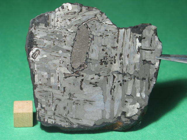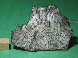 Description: Classification: cohenite-schreibersite-rich iron. Bulk composition: Co = 0.46%, Ni = 6.43%, Ga = 89.6 ppm, As = 11.6 ppm, Ir = 3.36 ppm, Au = 1.46 ppm. The composition is indistinguishable from Campo del Cielo.